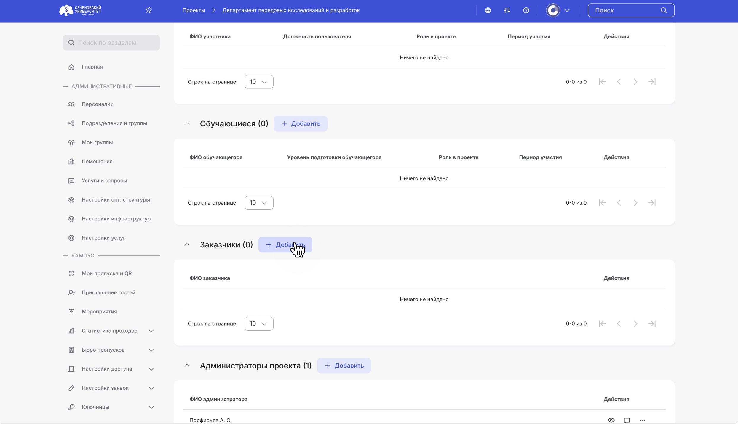 3. Во вкладке «Участники» найдите раздел «Заказчики». Для того, чтобы добавить заказчика, нажмите на кнопку «Добавить».