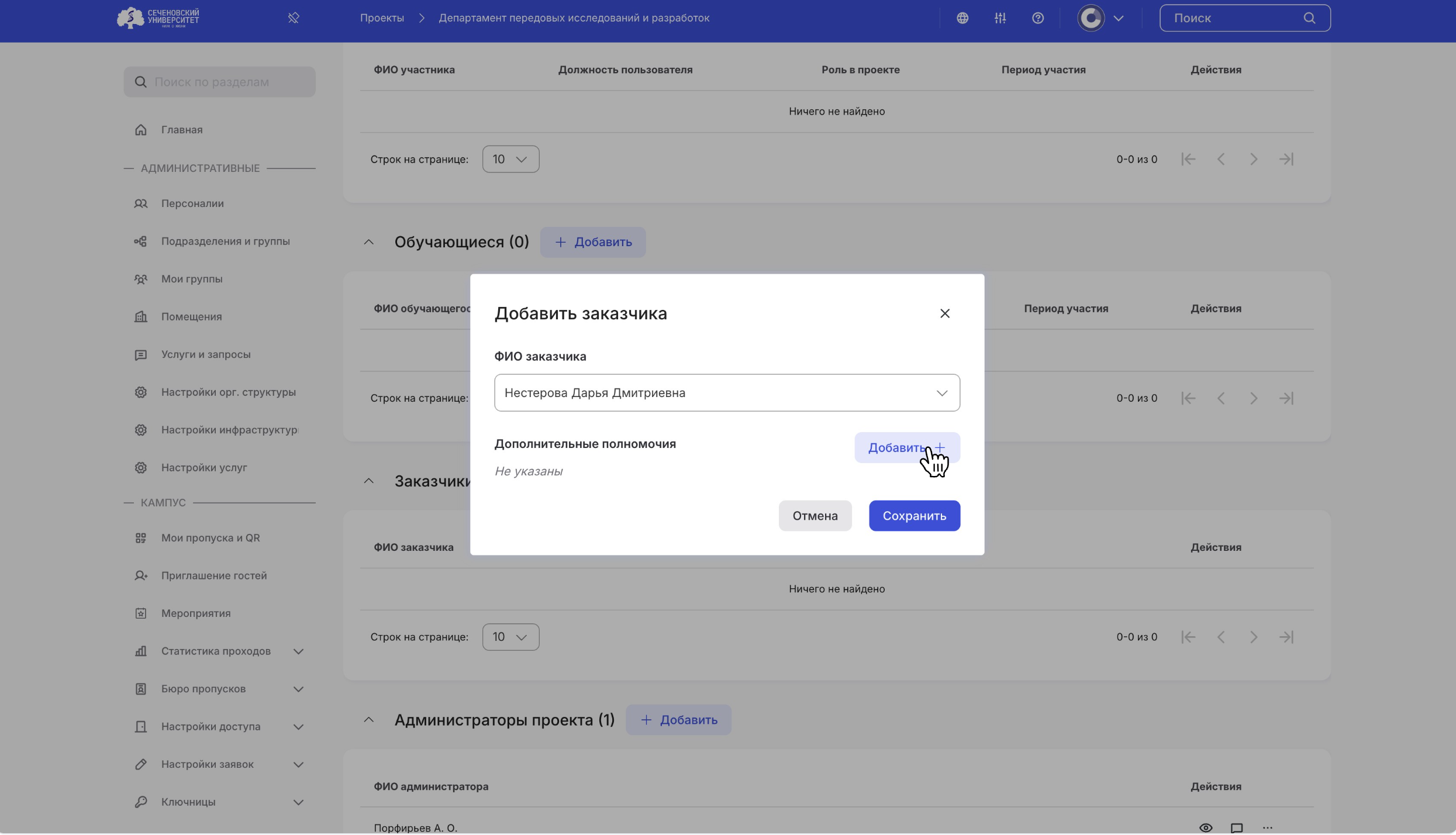 7. После того, как вы выбрали пользователя и добавили ему полномочия заказчика, нажмите «Сохранить».